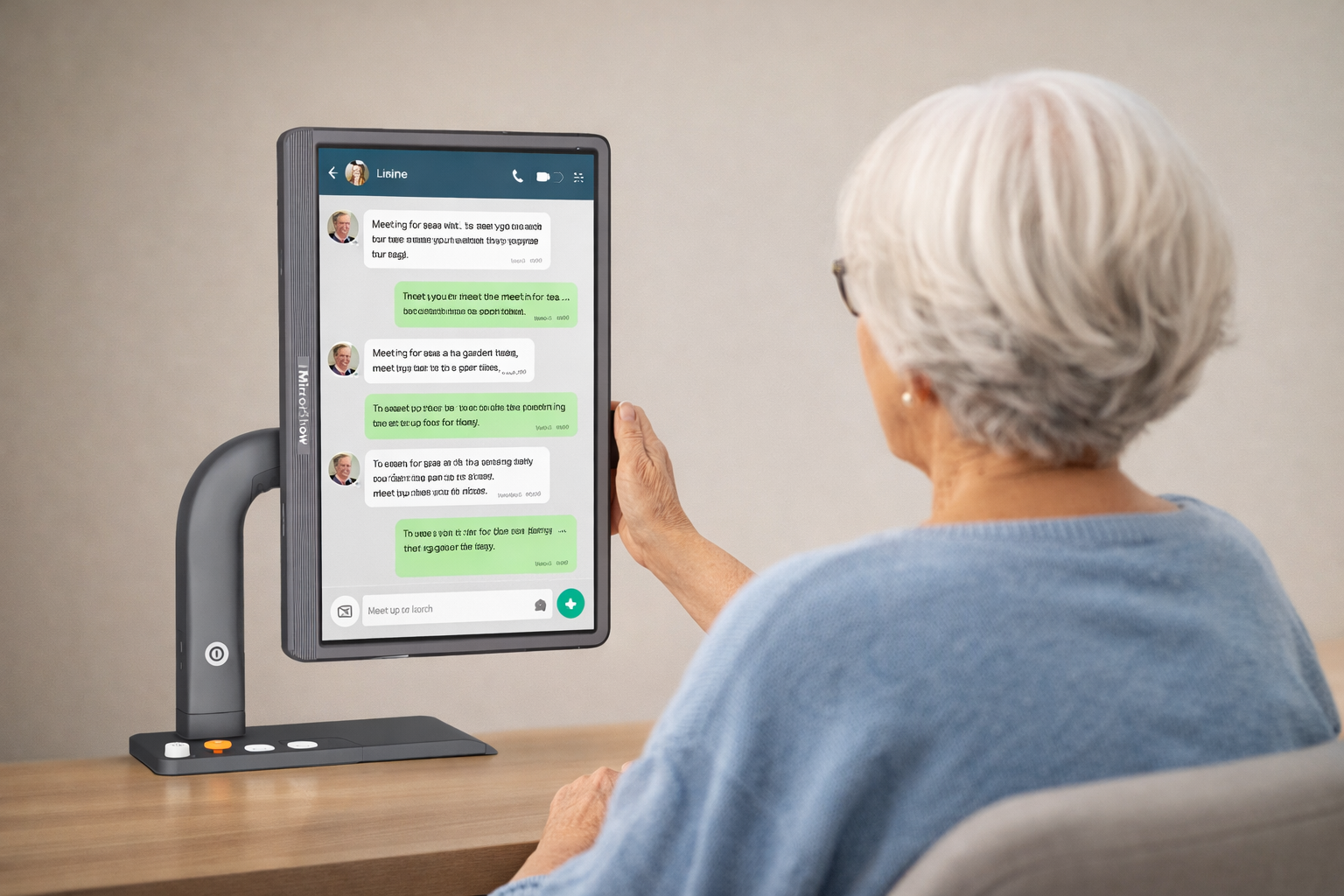 ケーブルでスマートフォンとRakuViewをつなぐだけで、スマートフォンの画面がそのまま大画面に表示されます。読むのが億劫だったテキストメッセージも読むのが楽しみになります。